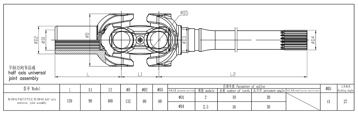 雙聯萬向節傳動軸總成